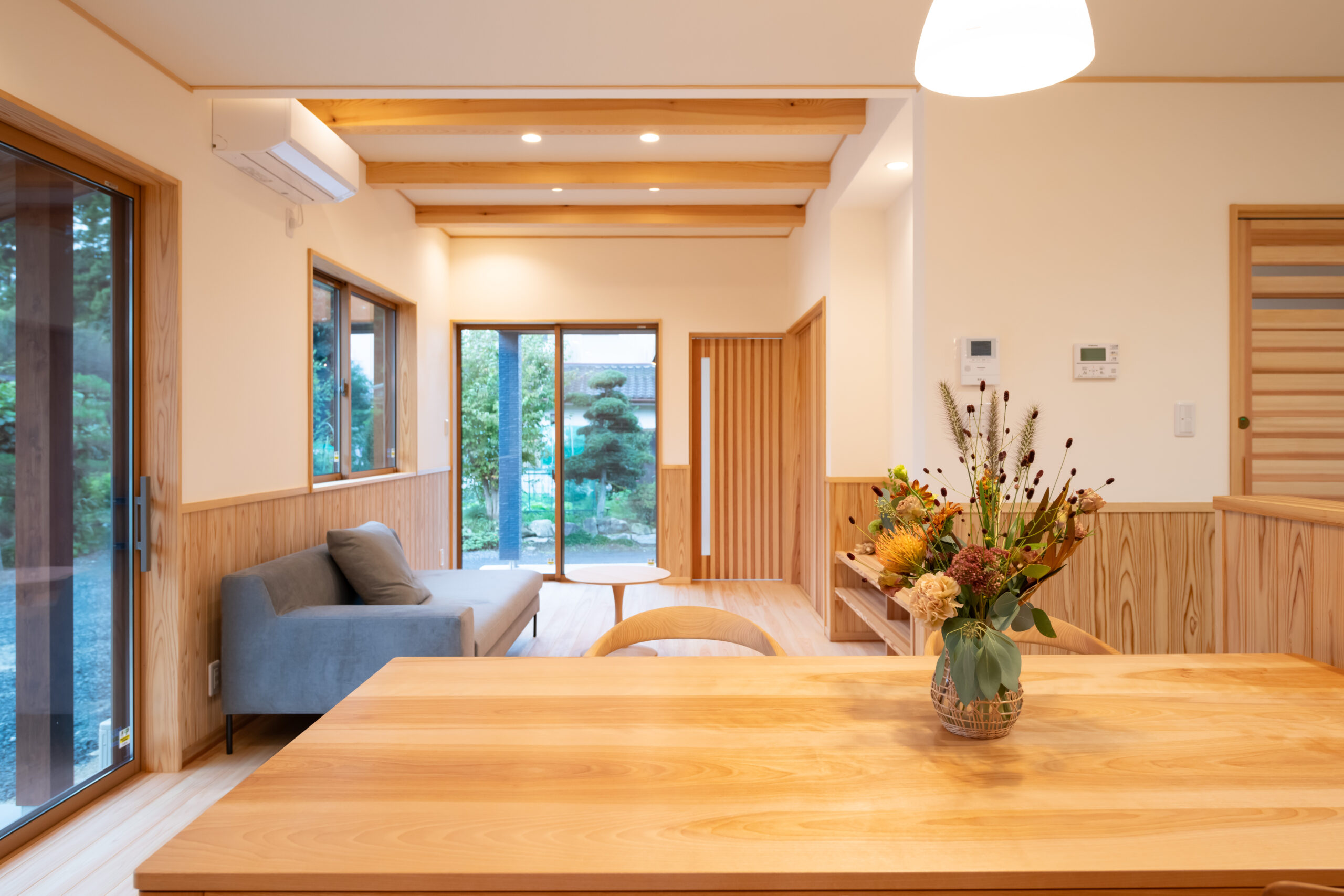 自然素材をふんだんに使用する事で、さわやかな空気感や調湿・消臭効果などが得られます。