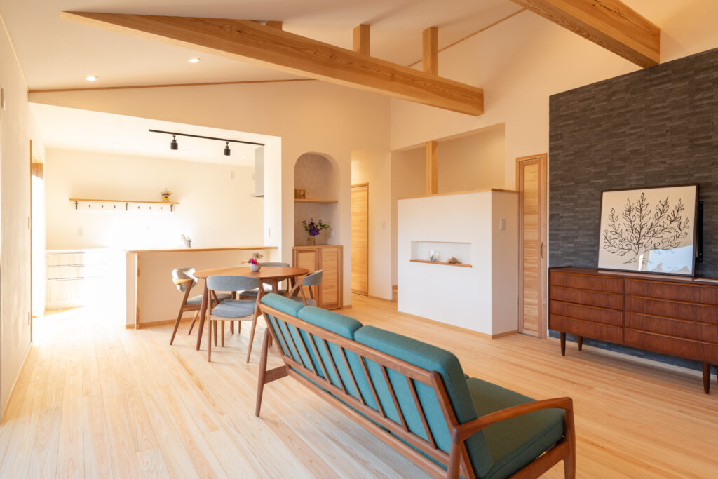 施工事例 丸和建設で施工された事例とお施主様の声をご紹介します。 新しい住まいづくりにお役立てください。 夏が涼しい 北限の桧と漆喰でつくる家 つくば市 豊かな暮らしを感じる、木の魅力あふれるすまい 物件概要 所在地 つくば市 延床面積 延床面積:118.68㎡(35.83坪) 施工面積:128.32㎡(38.74坪) 構 造 木造2階建 抜群の景観を望める自然豊かな立地に合う、優雅に佇む外観のお宅です。 内部に入ると桧の香りが漂い、爽やかな空気感に包まれます。 国産木材と漆喰など、職人がしっかりと作る家の中で、景観を活かしたプランニングを行い、薪ストーブの配置やペット(ネコ)との暮らしも意識して家づくりしています。 その他にも使い勝手の良い造作家具や、空間を引き立てる木製建具など、豊かな暮らしを実現する上で、欠かせない工夫が随所に施されており、見どころの詰まったお宅です。 その他の施工事例 桧が香る やさしい空気の平屋 古河市 陽だまりに包まれる桧の平屋 石岡市 ヒノキづくしの平屋 小美玉市 一覧へ戻る ホーム 施工事例 夏が涼しい 北限の桧と漆喰でつくる家