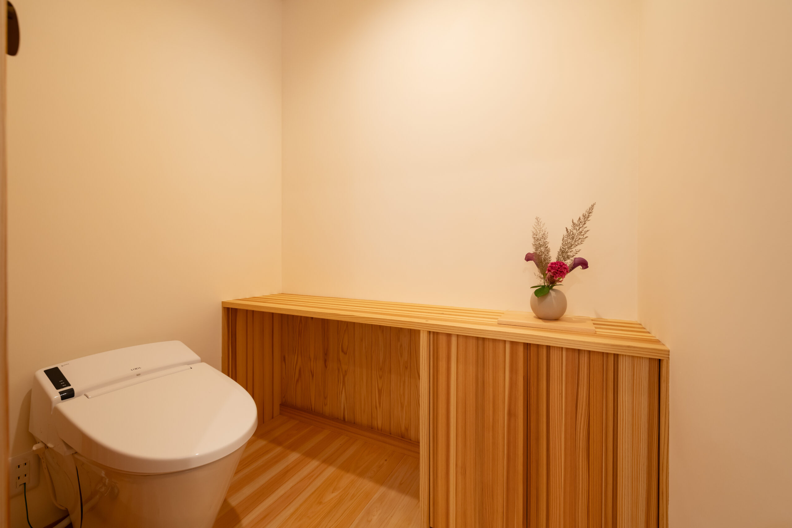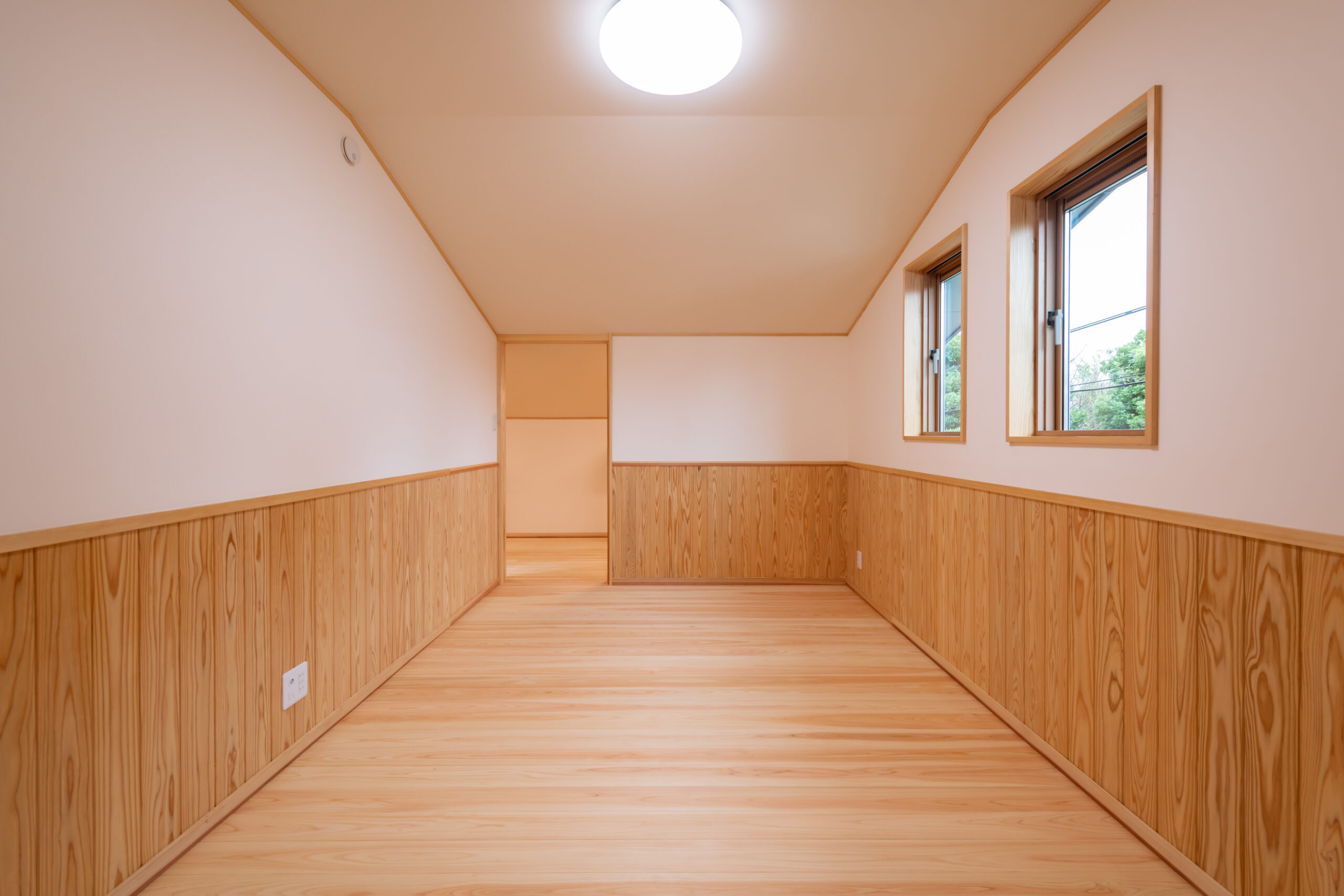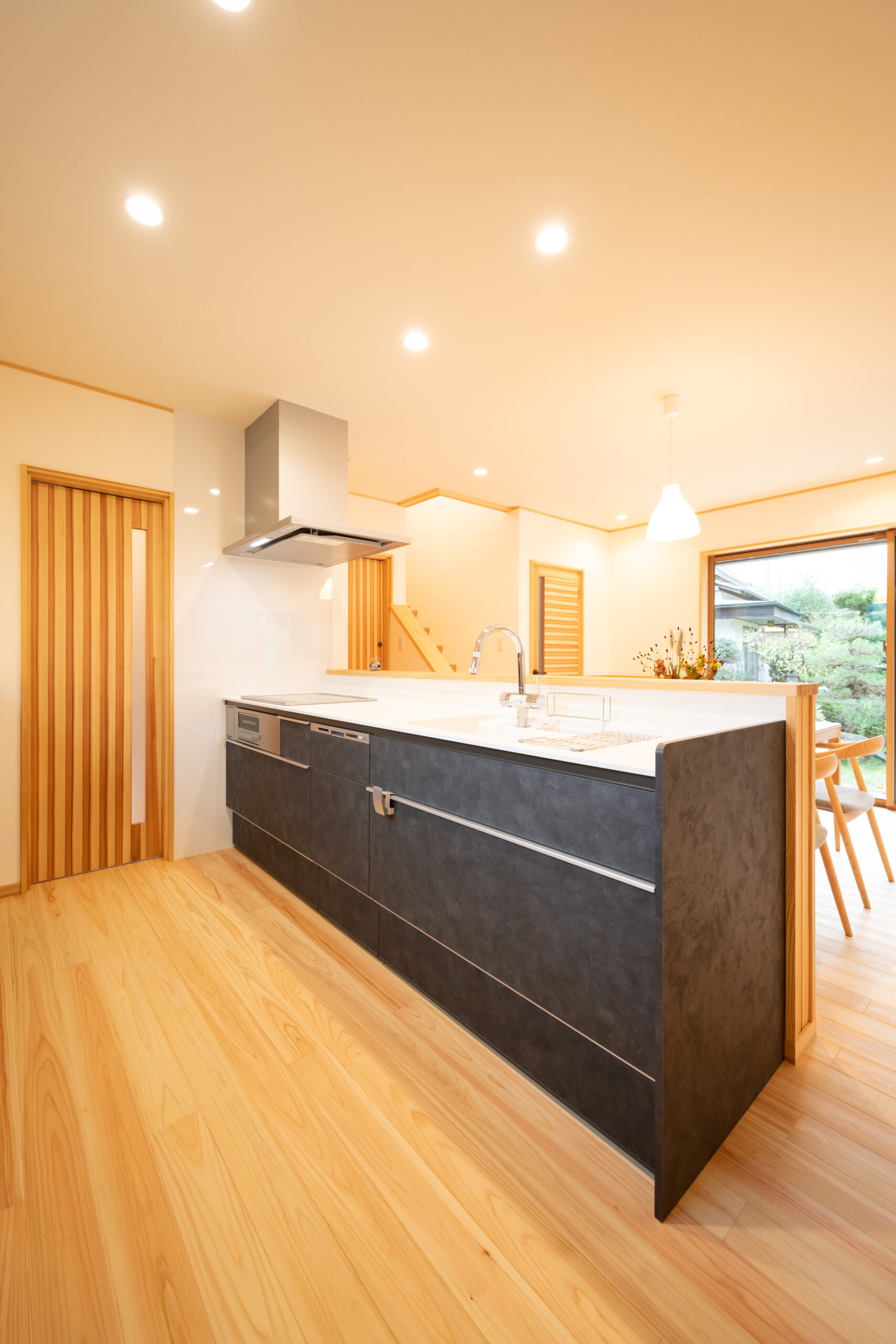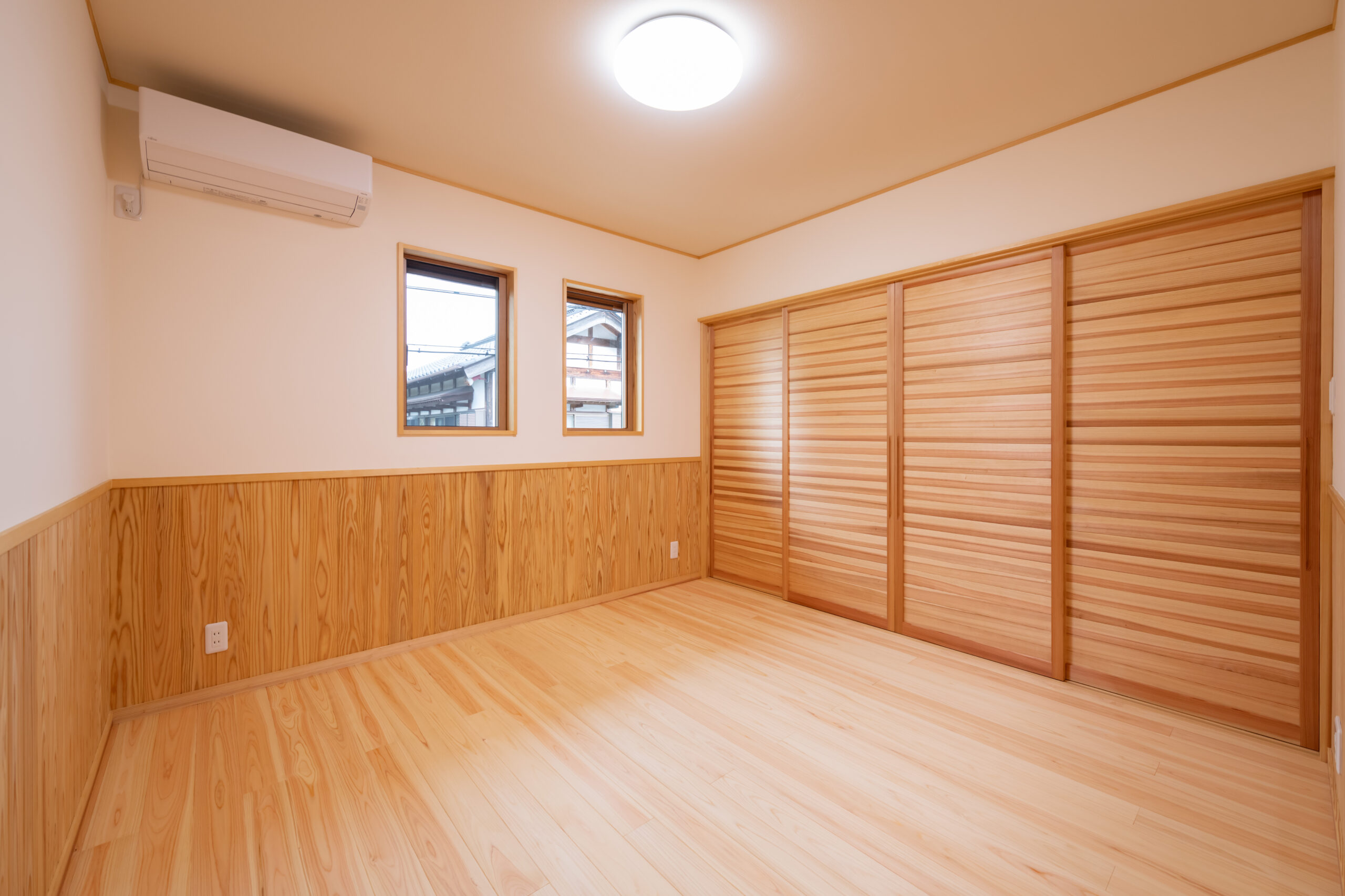 室内に一歩入ると、桧の床と柱、建具が迎えてくれます。